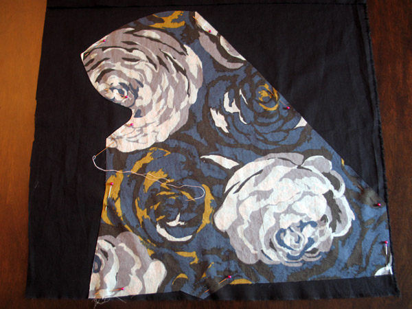 This is my skirt front piece, where I just finished basting it to the black cotton batiste.