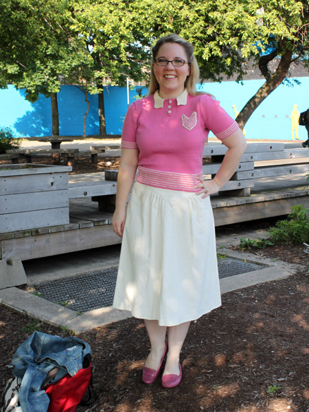 I fell a bit off of MMM this past week. During the week I was fine, but as I anticipated the weekends were challenging. What really made it worse is that I was dealing with 90 degree weather without air conditioning. There was no article of clothing I’ve made that would have made the heat bearable. To survive I wore… boxer shorts *shudder*. I never wear shorts! Plus I actually didn’t leave the house at all on Saturday-Monday. I’ve been a home-body working on my 40’s dress for the Sew Weekly Challenge among other things.